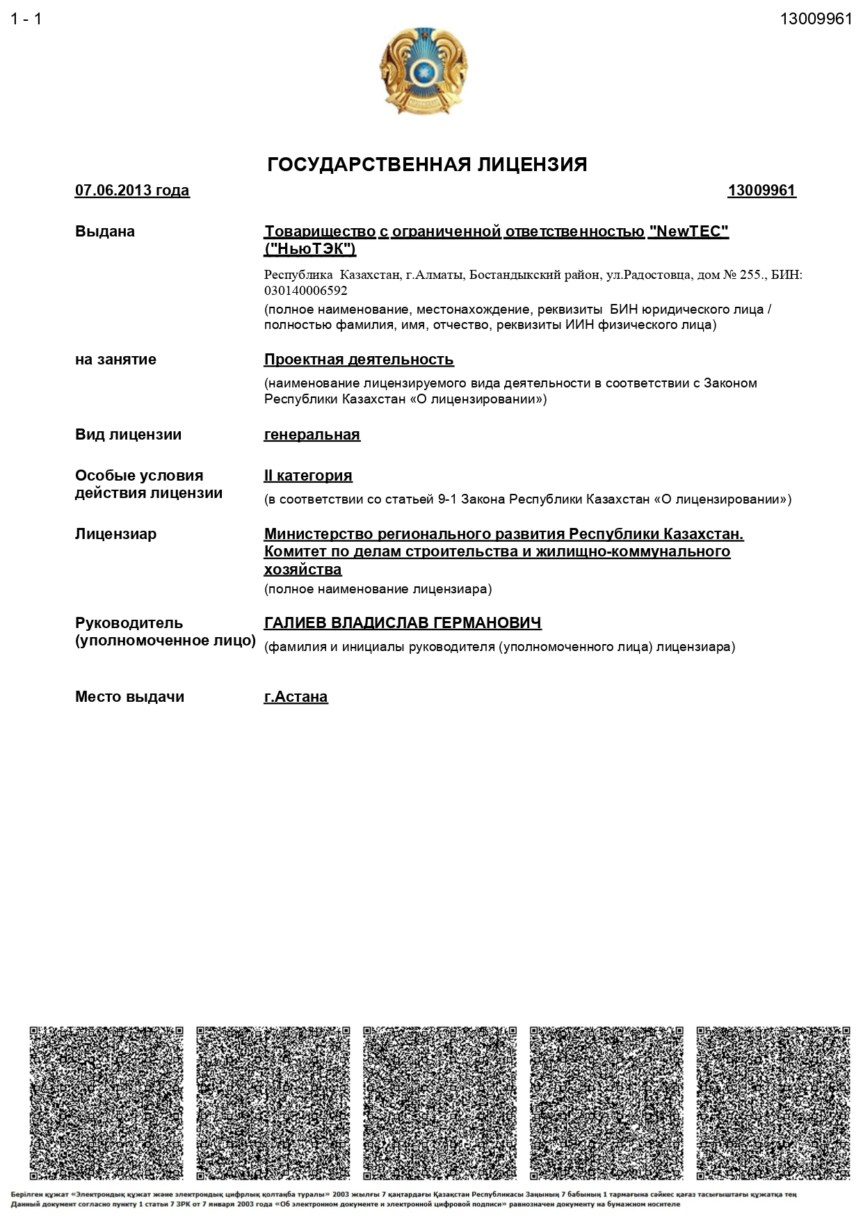 - Система менеджмента качества на соответствие требованиям СТ РК ISO 9001-2016, СТ РК ISO 14001-2016, СТ РК ISO 45001-2019
